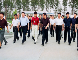 2004年8月,中共中央政治局委员、国务院副总理回良玉与国务院副秘书长张勇等国家领导在河南省省长李成玉的陪同下到我厂视察工作。